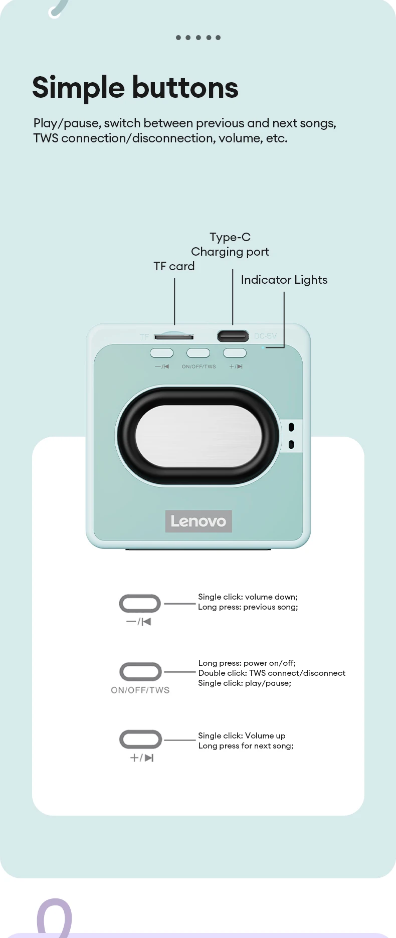 Elección Lenovo TS50 inalámbrico Bluetooth V5.4 altavoz exterior